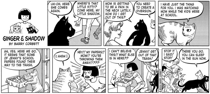 Bear with me. I’m going to post the complete Ginger & Shadow, one strip at a time. These are the first few comics (the artwork begins to improve after a while).